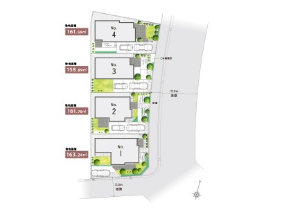 敷地面積158㎡~163㎡、駐車場2台のゆとりある街区。