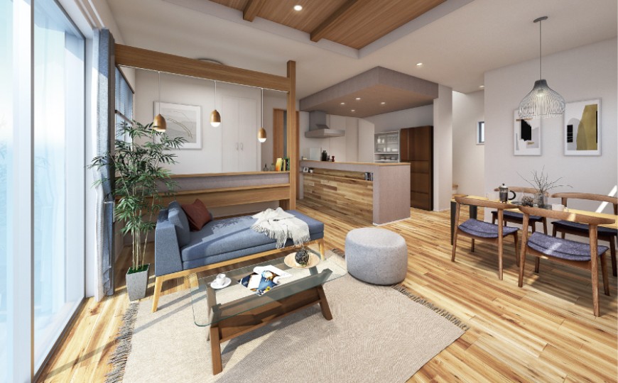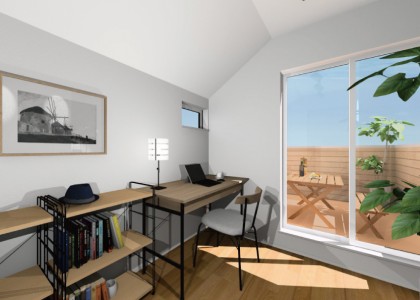 内観は小上がり空間を設けた“カフェスタイル”と多用途に使える部屋を設けた“マルチスタイル”の2スタイルをご用意。全邸2階に“書斎”スペースもあり、テレワークやオンライン授業などニューノーマルな暮らしを快適に過ごせるプラン設計になっています。