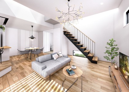 ■スタイリッシュでシンプルなデザイン。ストリップ階段や吹抜け天井など広さ感じる空間設計。