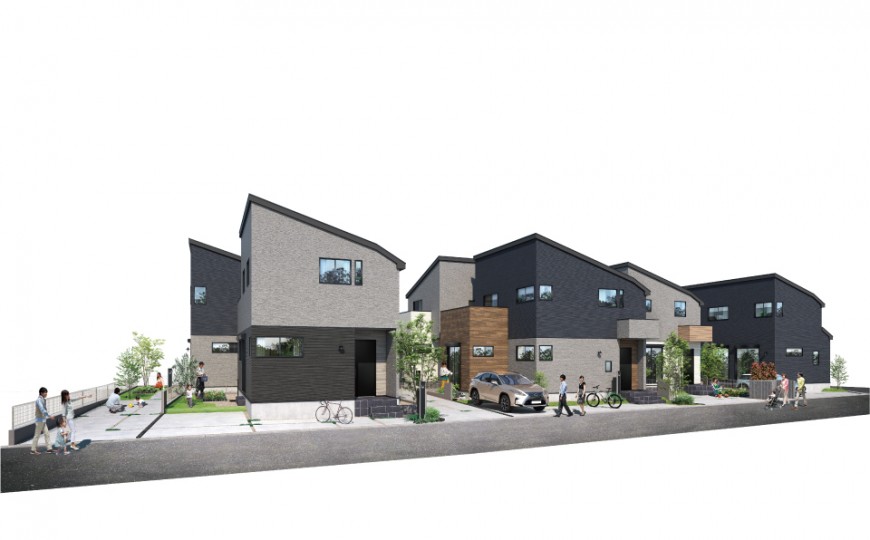 全邸敷地面積120㎡以上、カースペース2台に加え、家庭菜園を楽しめるキッチンガーデンが標準設置でゆとりある広さの街並みになっています。