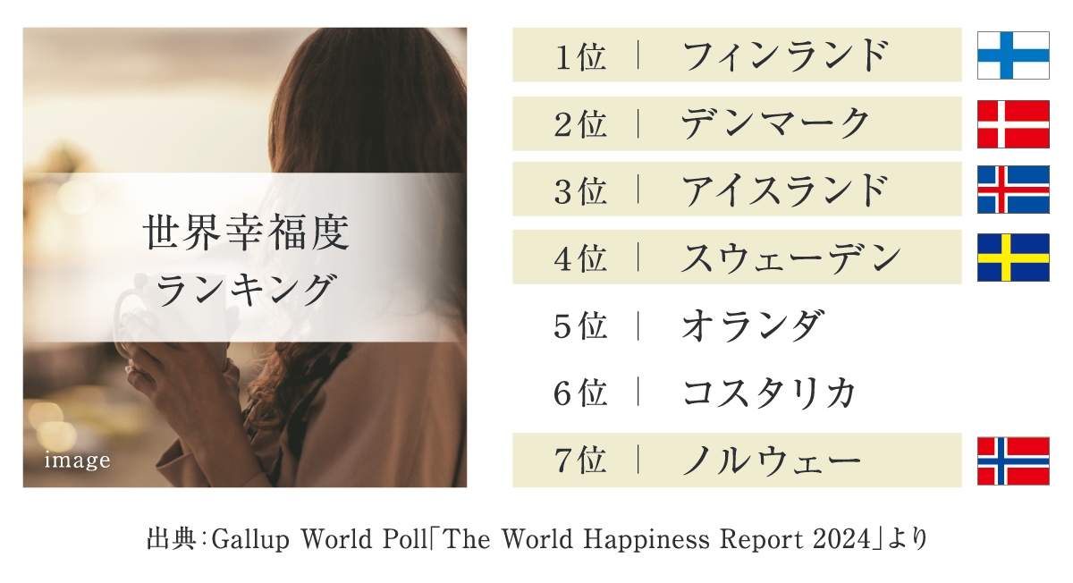 近年は北欧の国々が幸福度ランキング上位を占めています。