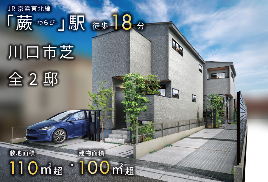【予告広告】JR京浜東北線「川口」駅/埼玉高速鉄道「鳩ヶ谷」駅など便利なバス路線でアクセススムーズ。6mの南道路に面した日当たり良好な2邸。敷地面積115㎡超のゆとりと4LDK/5LDKを確保。