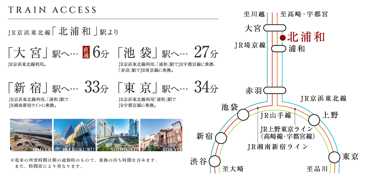 ■バス利用で「北浦和」/「さいたま新都心」の2駅が利用可能。