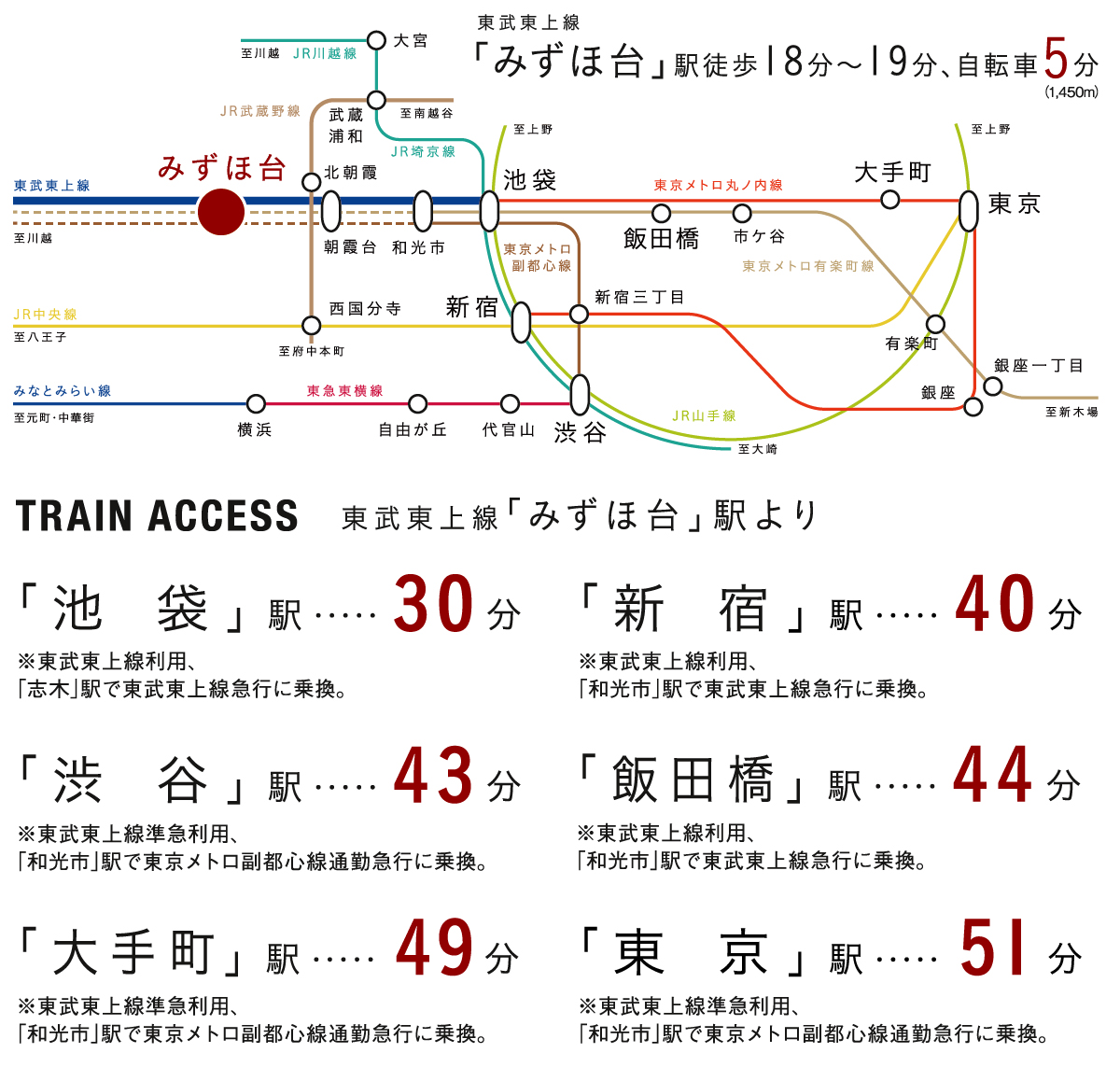 ■「池袋」駅まで30分の電車アクセス、都心への通勤にも便利な東武東上線利用。