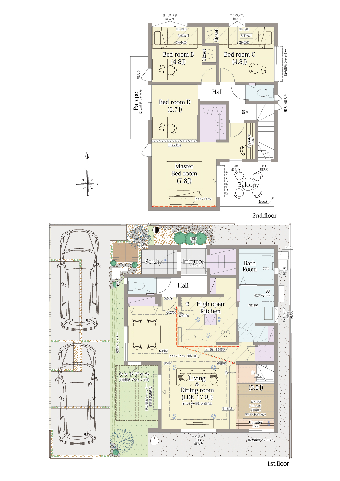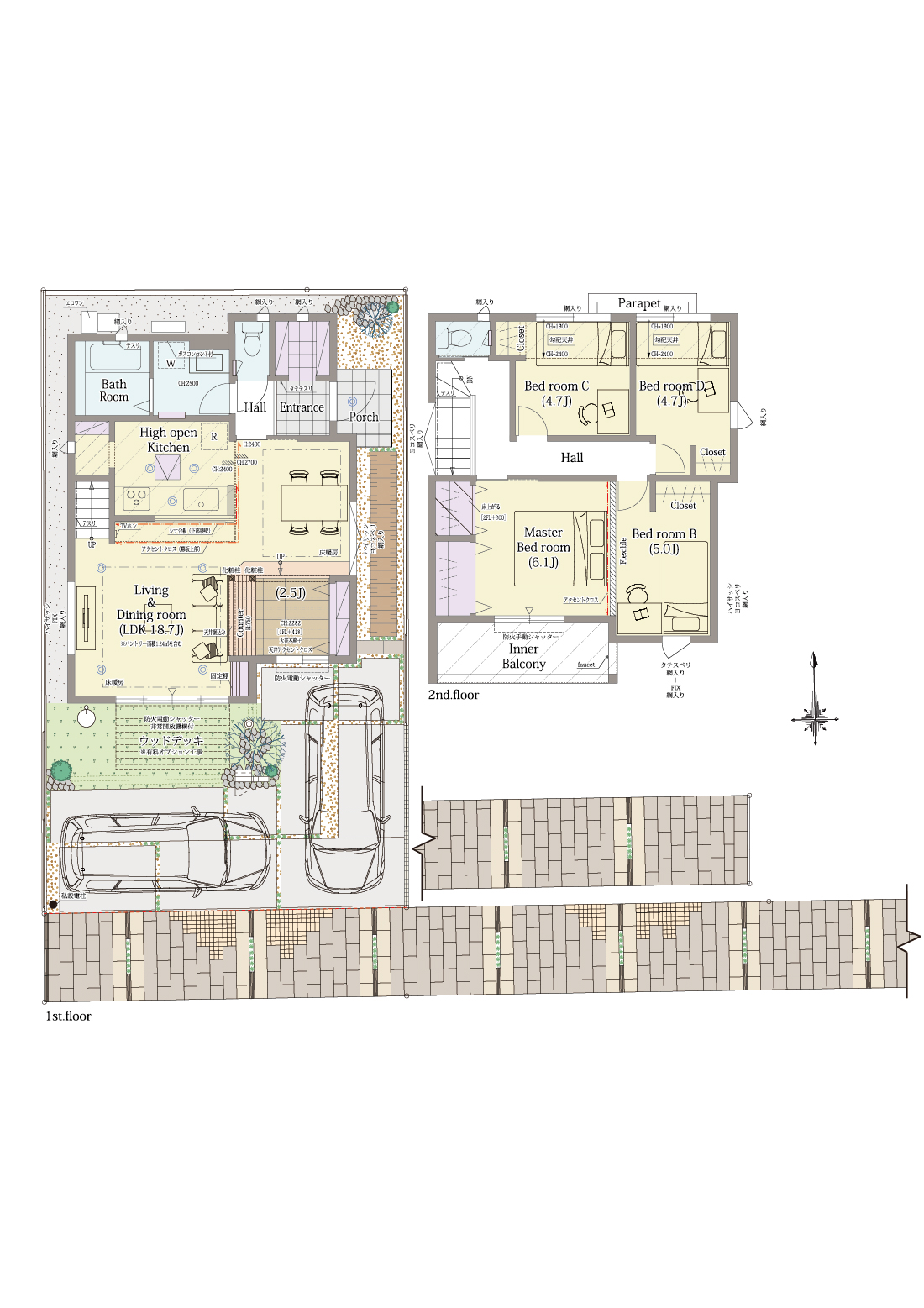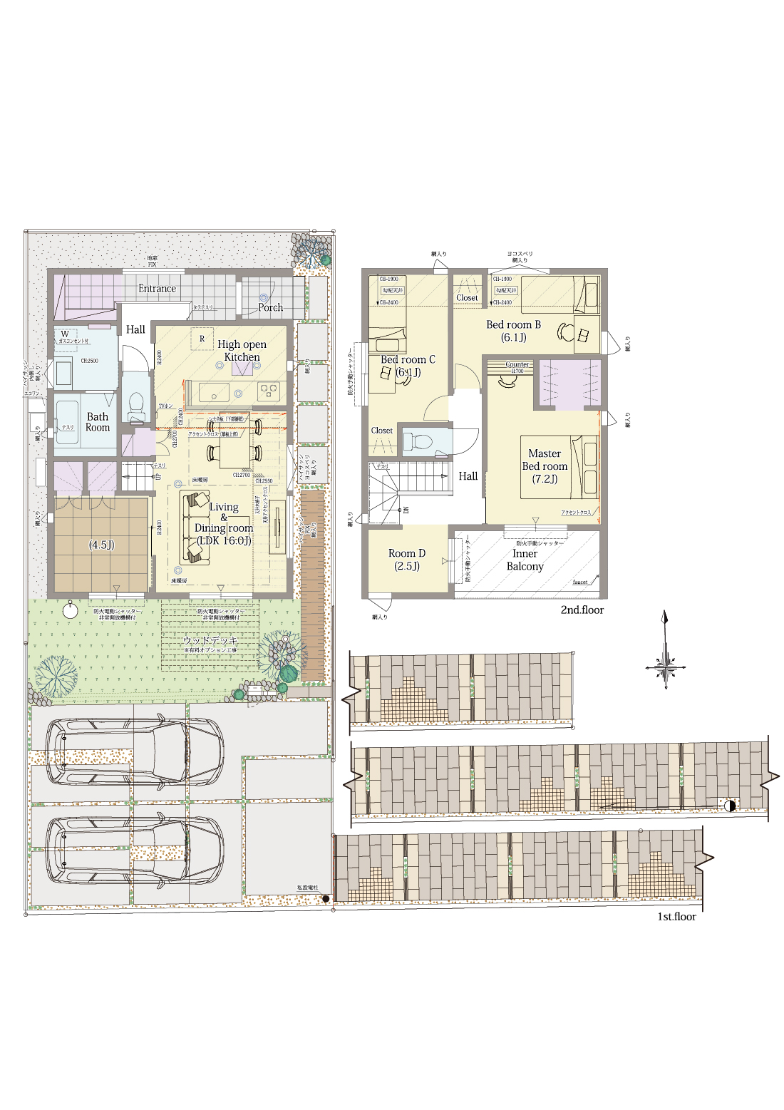 ■全邸カースペース2台置き、充実のカーライフを実現できます。