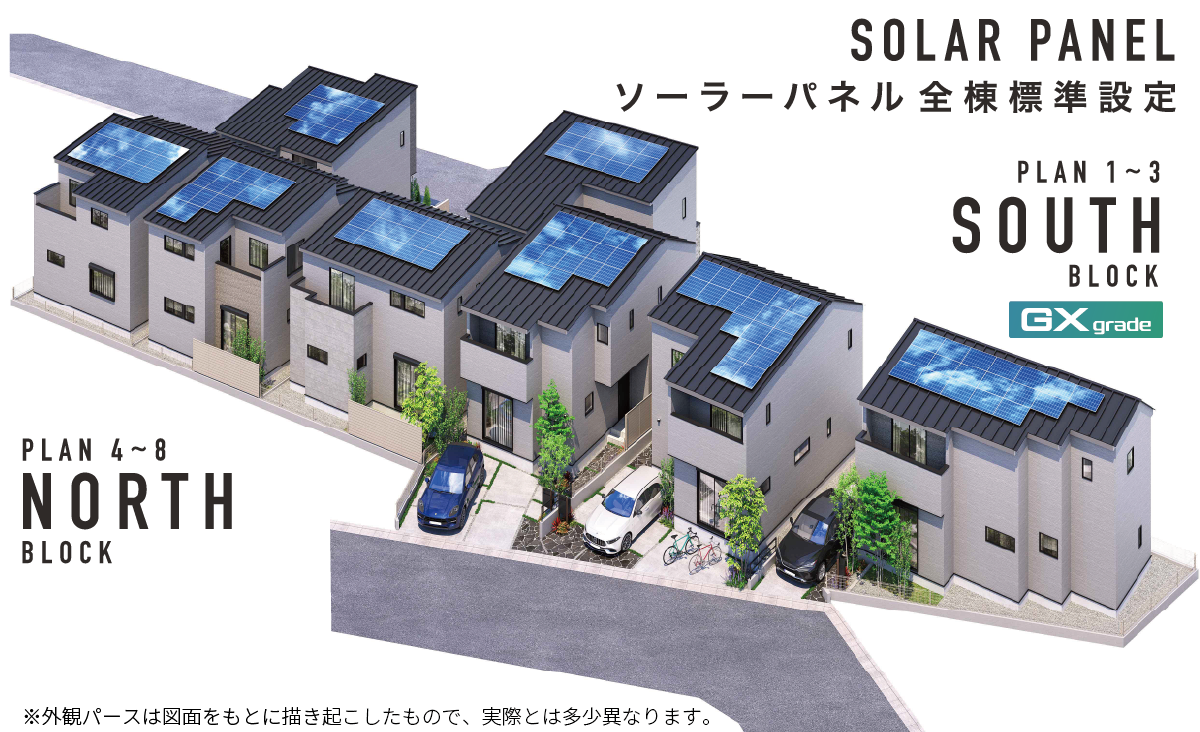 【予告広告】「地下鉄成増」駅徒歩14分を始め、始発のある「和光市」駅も利用可能な3駅3路線利用。全邸2台カースペースを設けたゆとりある全8邸の街並み。