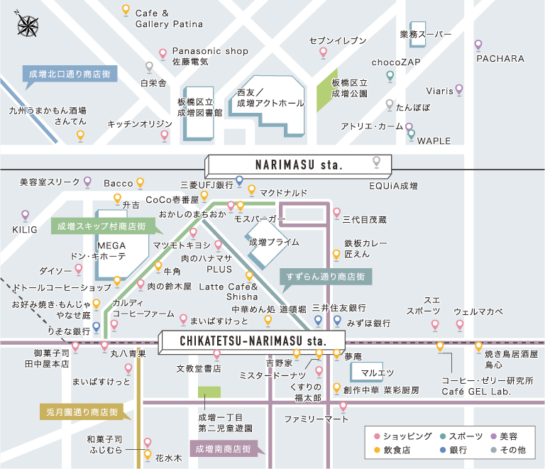 駅周辺の商業施設や商店街が充実する「成増」駅周辺エリア。
