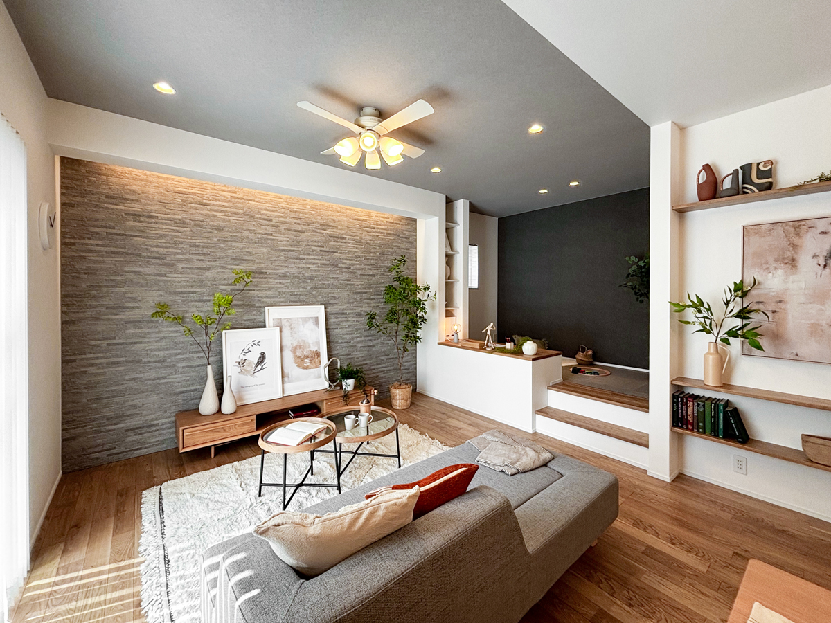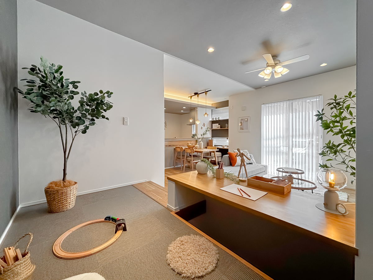 小上がりラウンジのモデルハウス。実際にご覧頂く事でポラスの建物の特徴を体感いただけます。