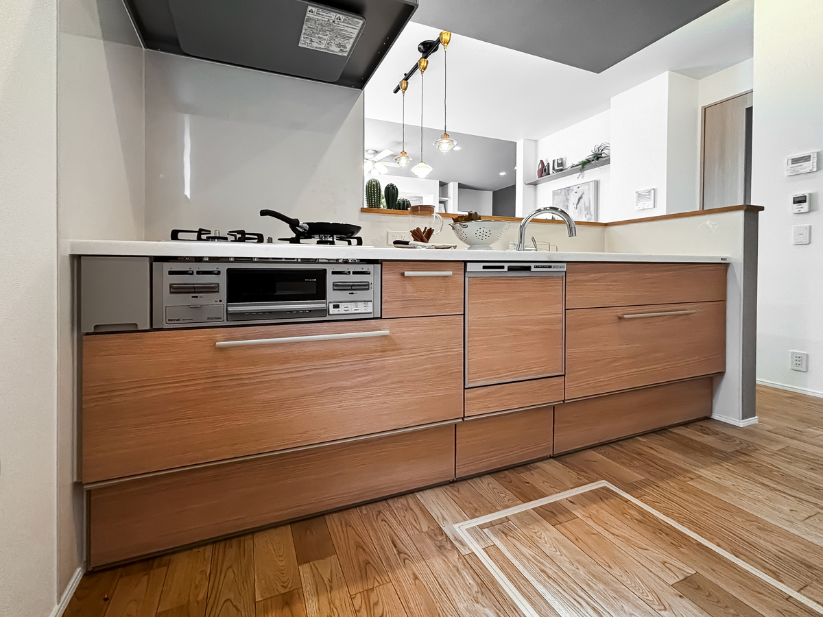 対面式のオープンキッチン。料理をしながらもリビングにいる家族を会話を楽しめます。