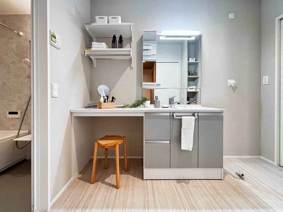 • ワイド洗面で混雑しがちな朝もゆったり準備出来ます。