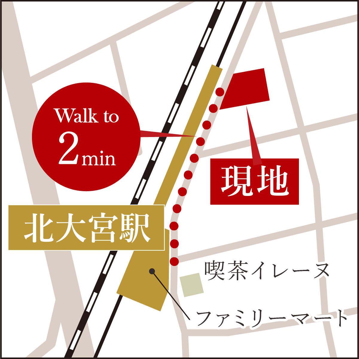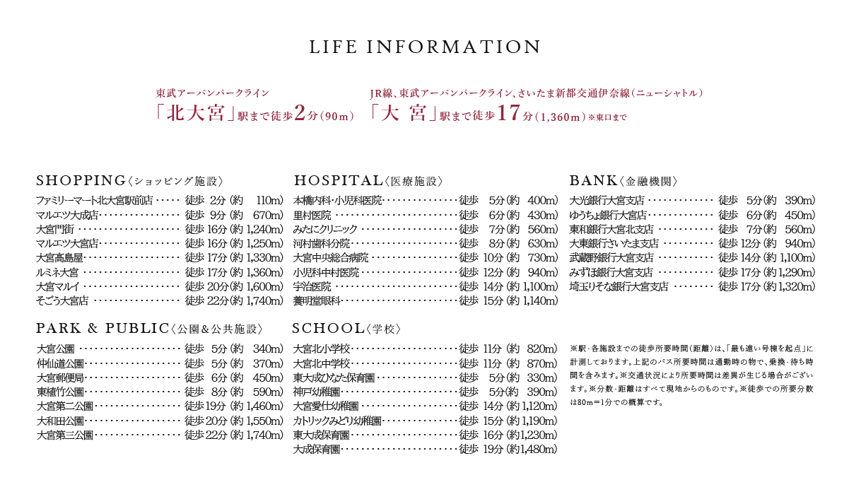 ※現地より「北大宮」駅ホームまで徒歩2分、「北大宮」駅から「大宮」駅まで東武アーバンパークライン利用2分。