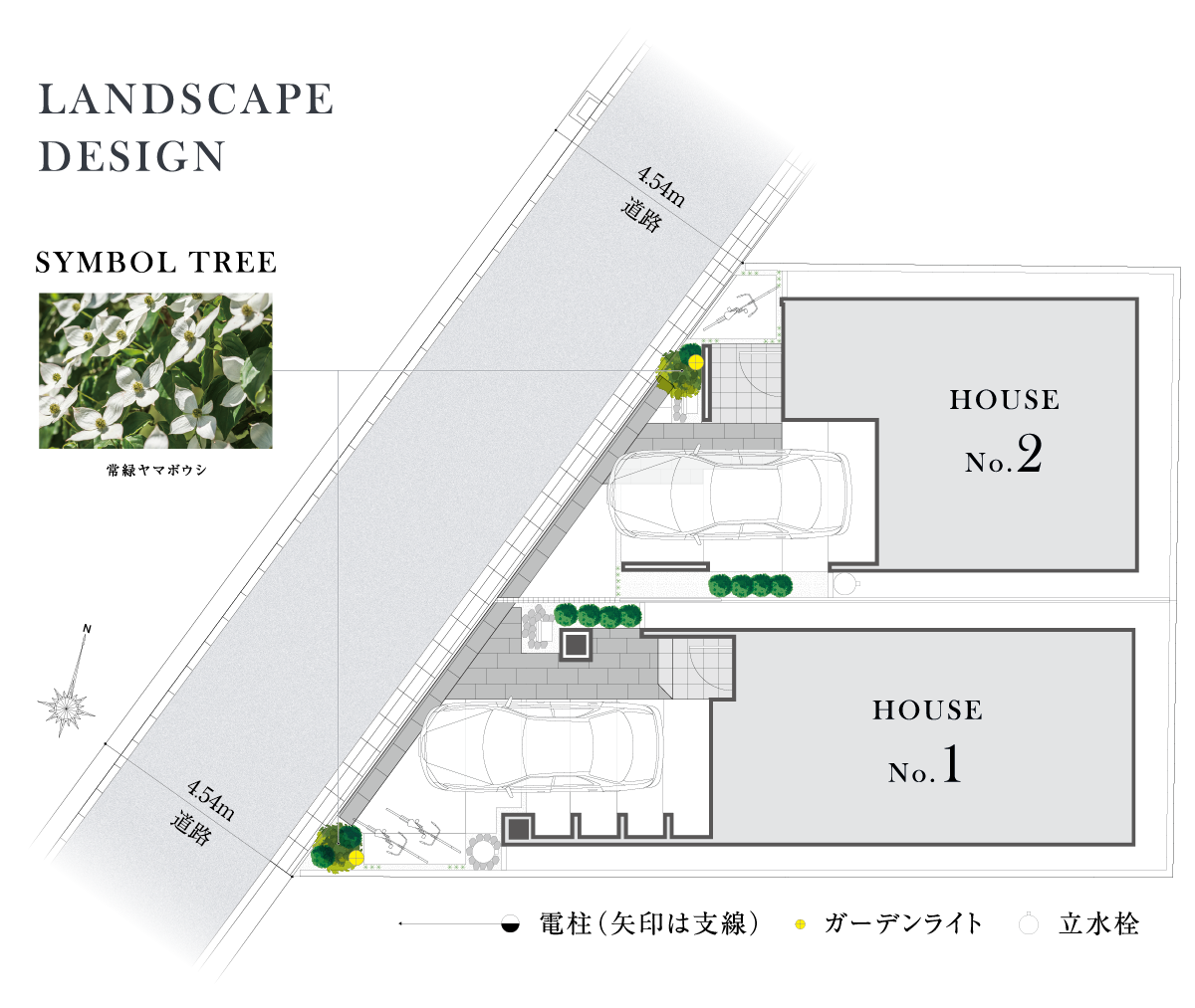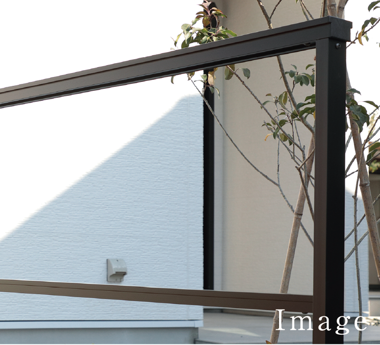 シンプルな黒のラインが、建物、ポスト、植栽などと調和。空間にスタイリッシュなアクセントを添えてくれます。