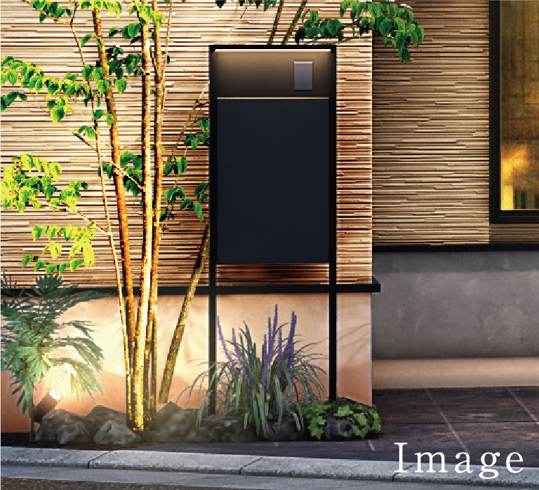 景観を邪魔せず、アクセントとなるフレームで構成されたポスト。建物にさり気なく品格を与えてくれます。また、宅配ボックス付きで留守中の受け取りが可能です。