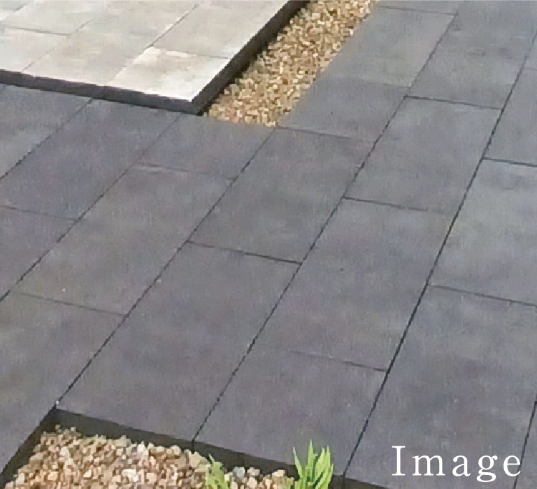 落ち着いた色調と色ムラが、和洋問わず様々なシーンにフィット。植栽や周囲の自然とも調和し、穏やかな街並みを演出する舗装材です。