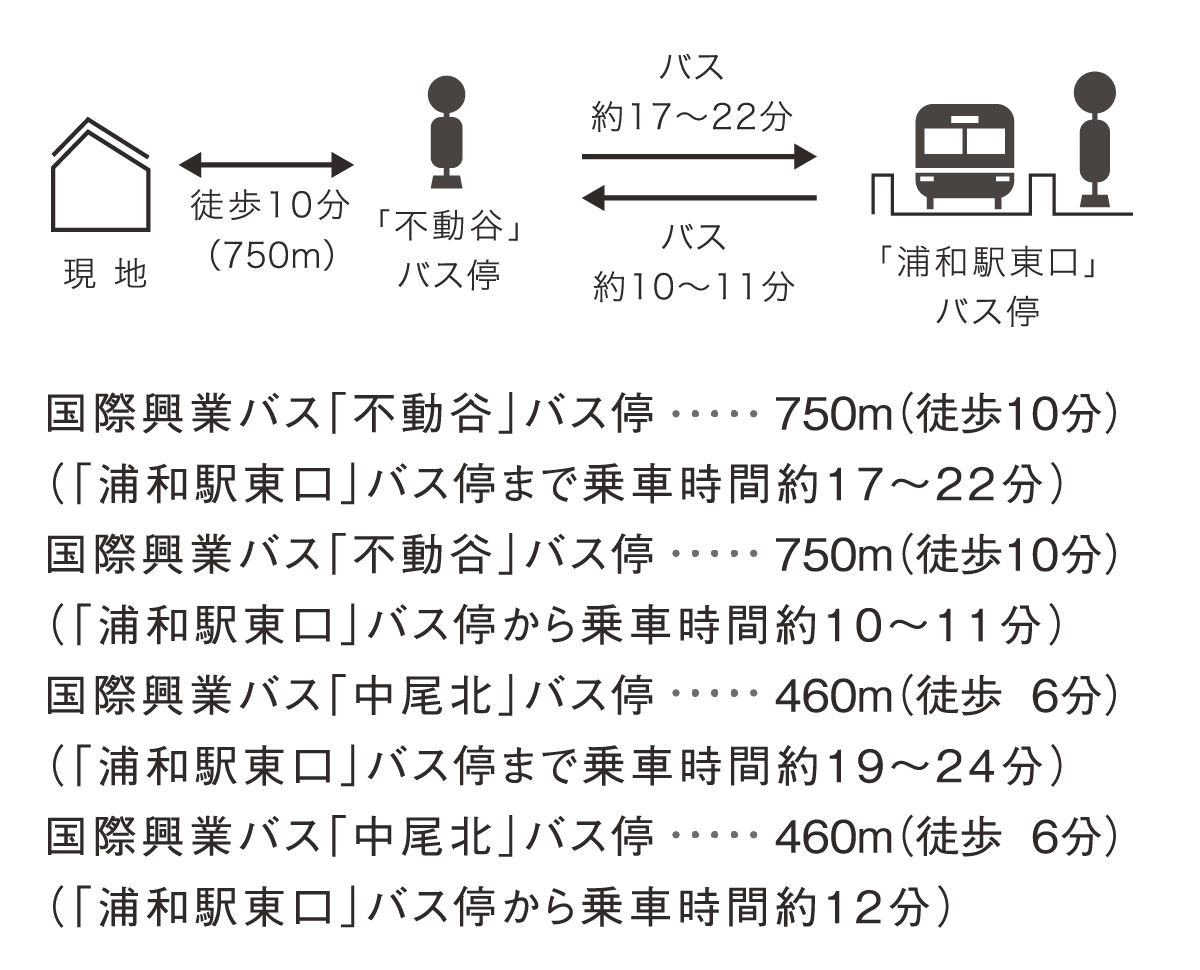 JR京浜東北線・JR東北本線・JR高崎線「浦和」駅までバス22分「不動谷」バス停まで徒歩10分