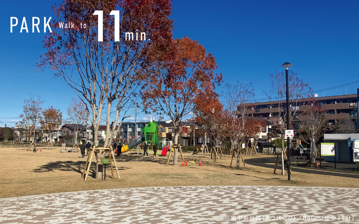 2025年10月にオープンした自然とふれあえる「三室中央公園(ヌウパーク)」が徒歩11分。