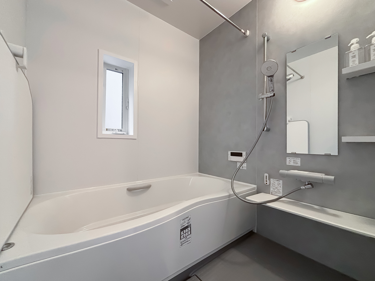 • アクセントパネルで個性を演出したバスルーム。